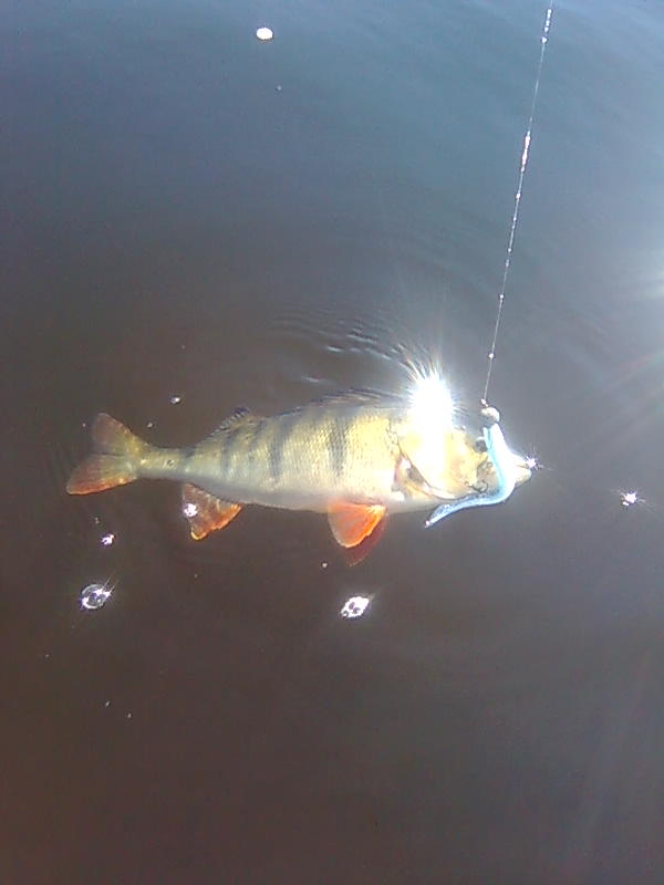 En randig tjockis blev första fisken.Sen blev det en gädda och fem små gösar innan det var dags att bryta upp.